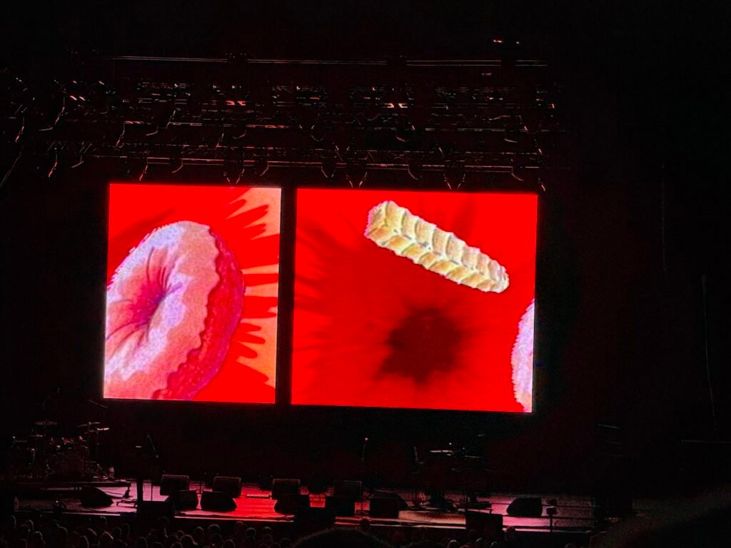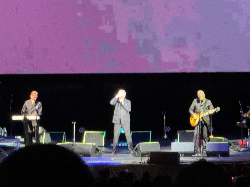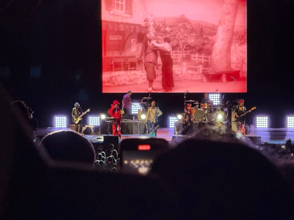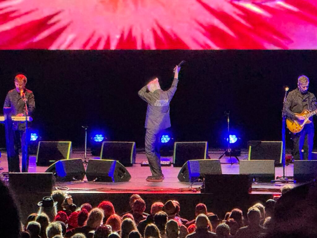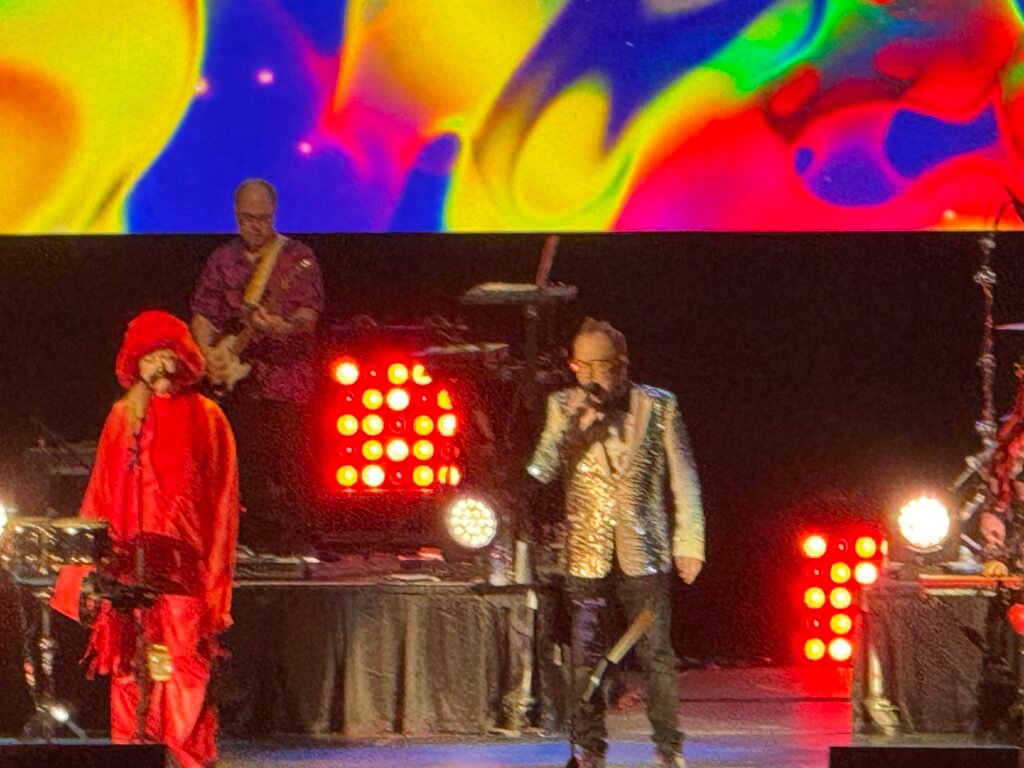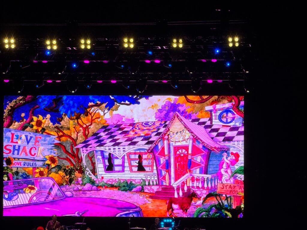 A pre‑show video montage warmed up the crowd. The video spliced snippets of “Legal Tender,” “Whammy Kiss,” and more with vintage clips of the band from Athens, GA. Then Fred Schneider, Kate Pierson, and Cindy Wilson hit the stage with “Cosmic Thing”. Cindy’s outfit was definitely an homage to “Rock Lobster” with flowing red sleeves and red hat.