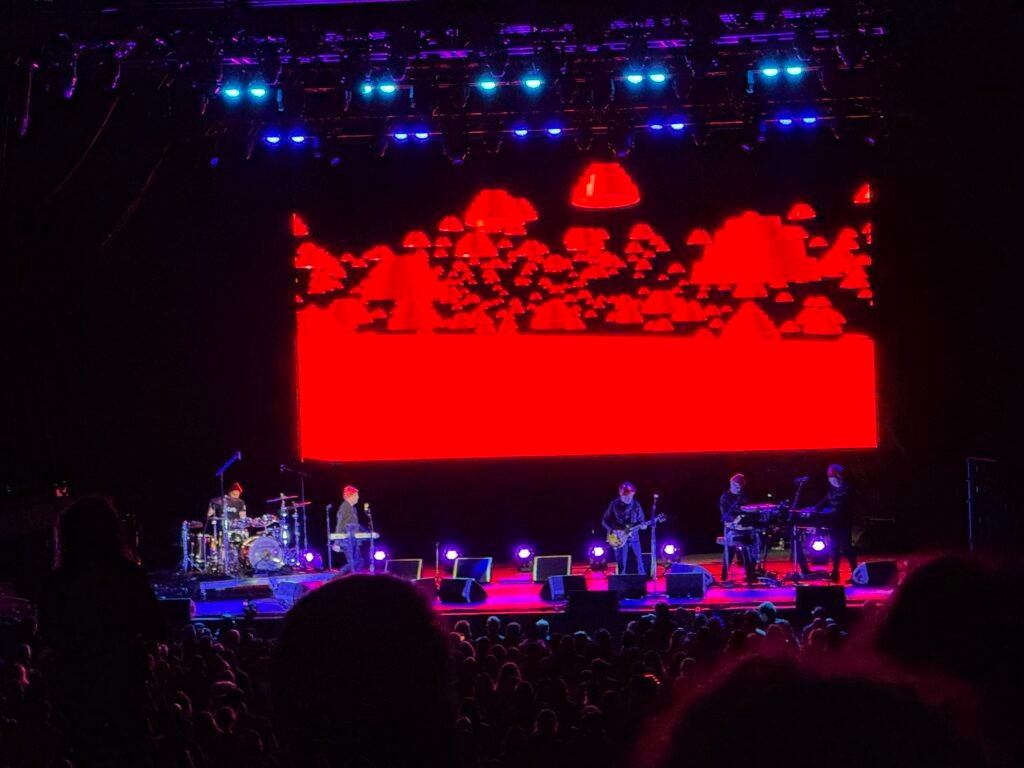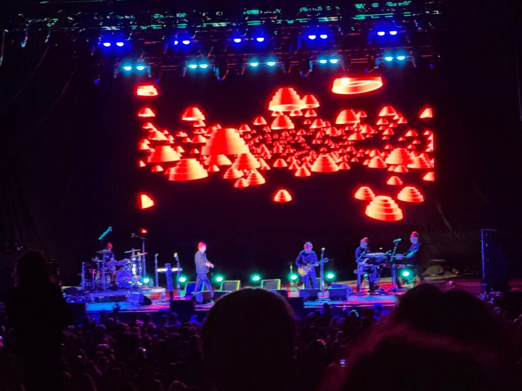 On several songs, Mark Mothersbaugh ran back and forth from the center front of the stage where he would sing and then run to the back right of the stage to play his synthesizer. Dude definitely got his steps in.