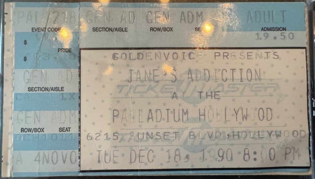 By the time I saw Jane’s Addiction live for the first time in December 1990, I’d already worn out my Nothing’s Shocking CD and was well on my way to wearing out Ritual de lo Habitual too. So, when they announced a show at the Hollywood Palladium—not far from my college apartment—it felt like the universe was rewarding me for my early devotion.