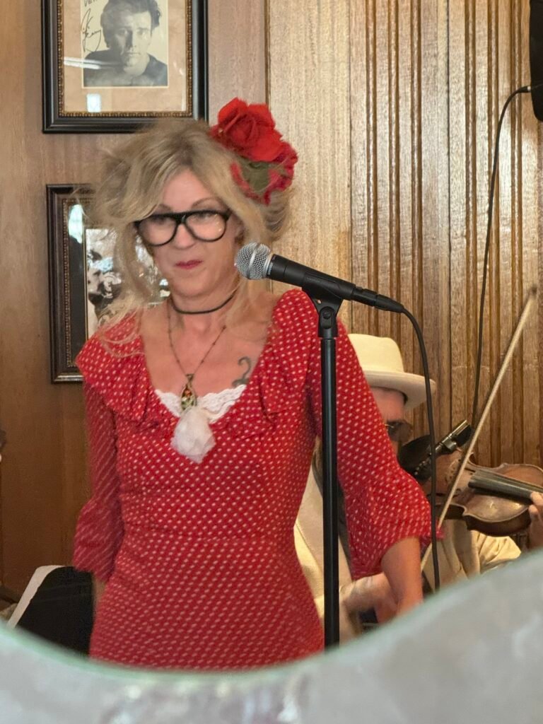 Before the band played, Cella stopped by a table near us to greet some friends. She lifted her foot to show them that the sole of her boot had come completely detached. Surprisingly, one of her friends had electrical tape and wrapped it around the boot to keep everything together. It was a tiny, human moment that made the whole morning feel even more personal.