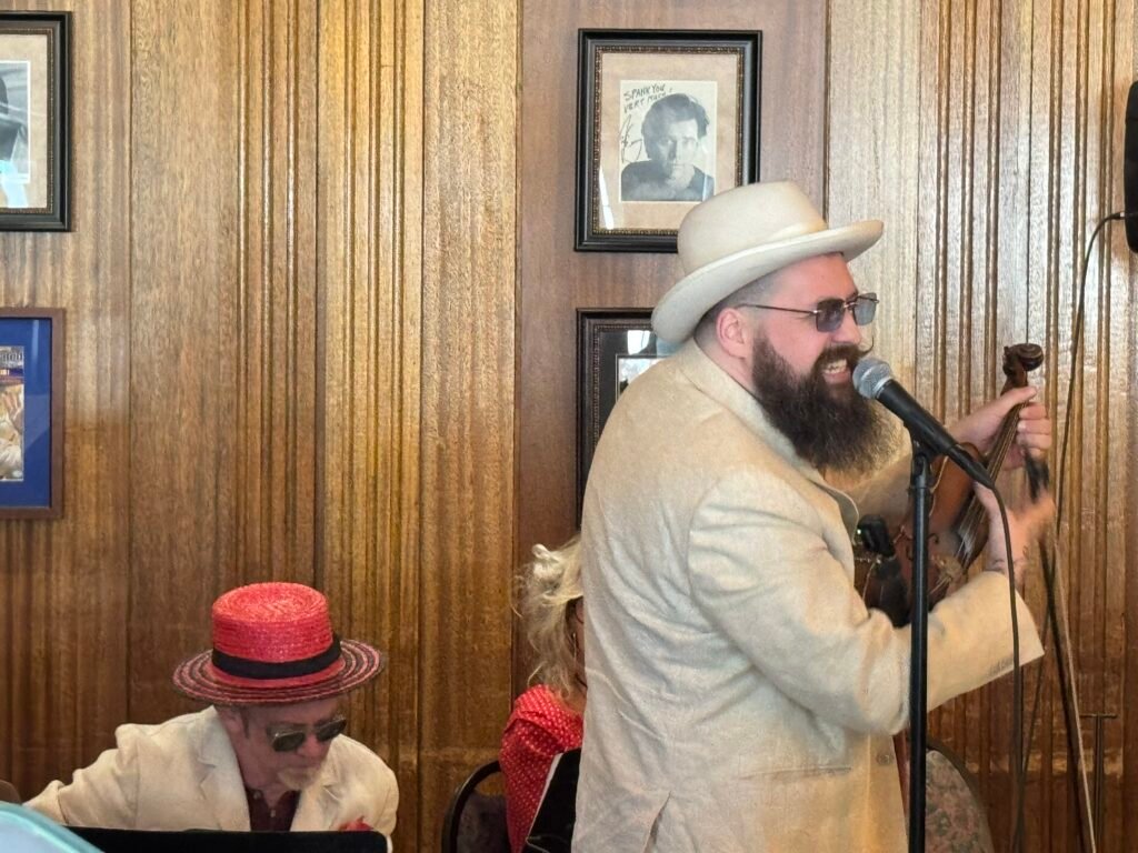 Saturday morningâs brunch was held in the hotelâs steakhouse. We got in line more than an hour early to make sure weâd get good seats. While we waited, we ended up opening the door for several band members as they arrived â the keyboardist with his hands full of gear, Dr. Sick carrying his violin case and saw, and someone else holding the door for the standâup bass player. It was a small, funny sequence that made the morning feel even more intimate.